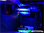 Blaue Neon-Fußraumbeleuchtung.