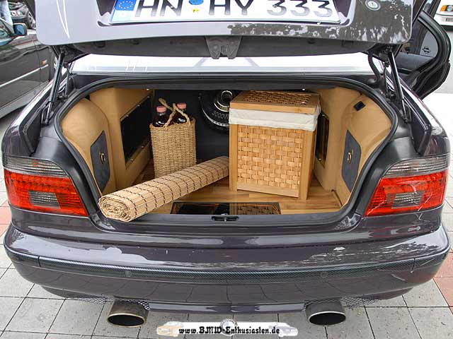 Der Kofferraumdeckel und die Auspuffanlage sind zwar nicht BMW, aber der Deckel ist leichter als der "Echte" und die