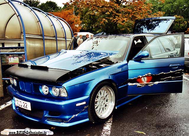 Der Besitzer ist Feuer und Flamme für seinen BMW.